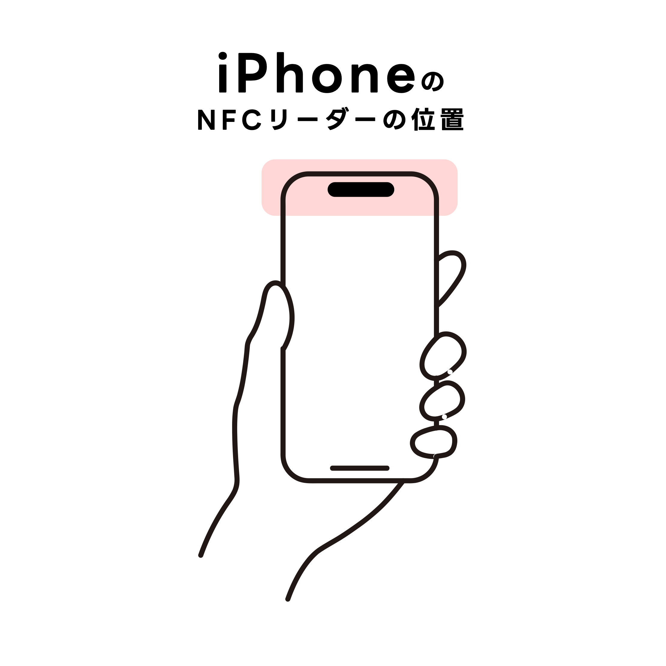 NFCリーダーは機種により位置が異なります。iPhoneは上部付近が一般的です。